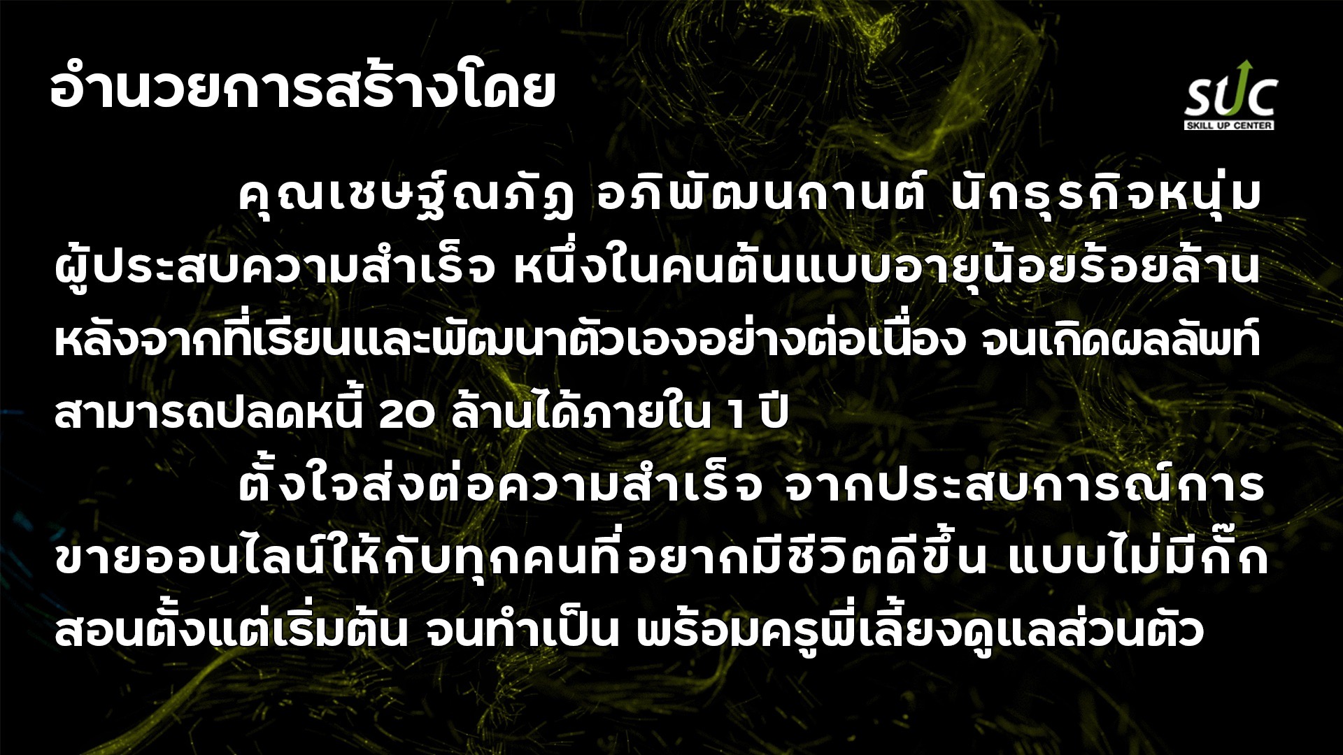 เพราะอะไรถึงขายไม่ได้ แม้กระทั้งหากขายได้แล้ว จะสามารถขยายธุรกิจได้อย่างไร.. ในคอร์สนี้มีคำตอบ..”